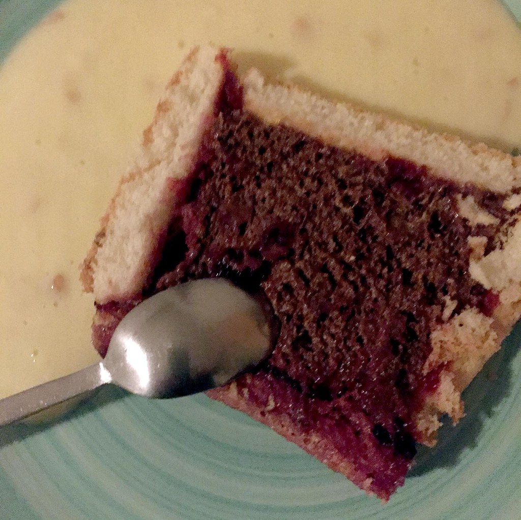 Anstelle von Punsch oder Sherry ein Glas Sauerkirsch-Marmelade erwärmen, durch ein Sieb schlagen und die Biskuit einpinseln!