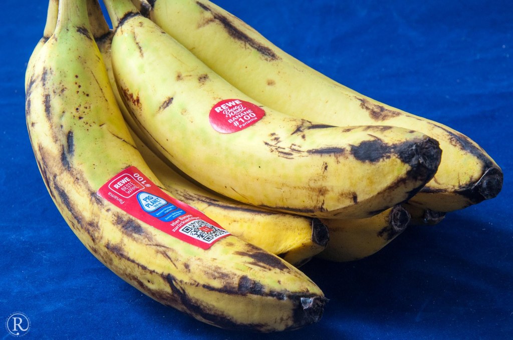 Oft sieht man in der Obstauslage überreife Bananenbündel, die gerade aussortiert werden. Manche Märkte sind bereits so vernünftig diese Früchte – und das sind nicht nur Bananen – in gesonderten Körben verbilligt anzubieten.