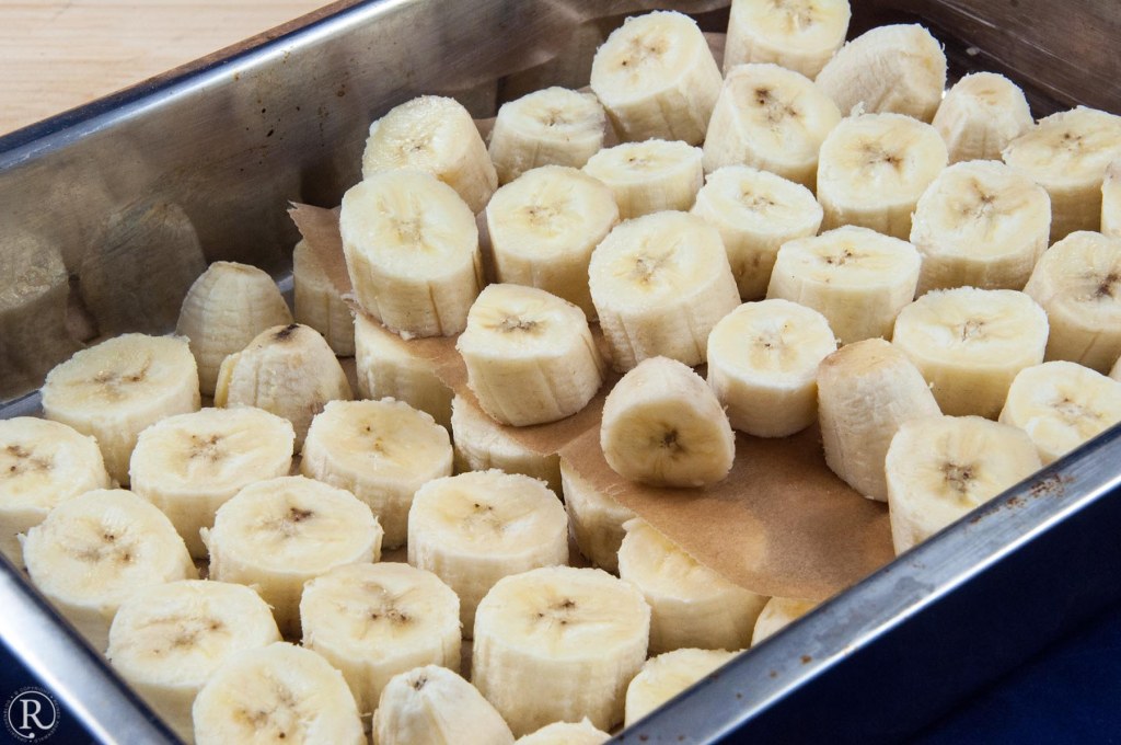 Abgesehen davon, dass man mit den eingefrorenen Bananen leckere Smoothies machen kann, sind sie eine toller Grundstoff für ein schnelles Bananen-Eis – als Halbgefrorenes mit Schokoladen-Stückchen, Mandelsplittern und, und, und …