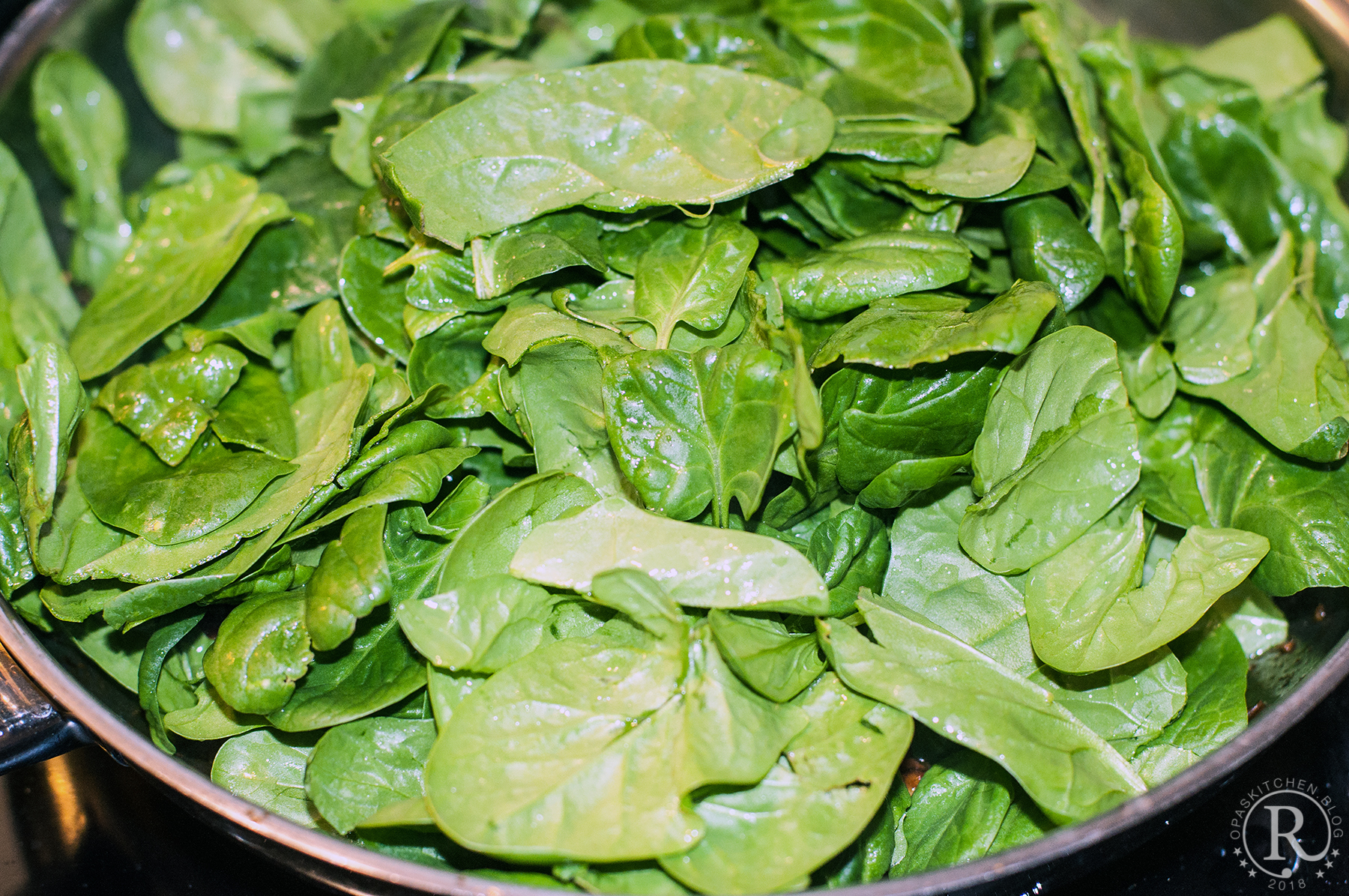- Gleichzeitig die gehackten Walnüsse ohne Fett in einer separaten Pfanne rösten – nicht anbrennen lassen. Zum Spinat geben.