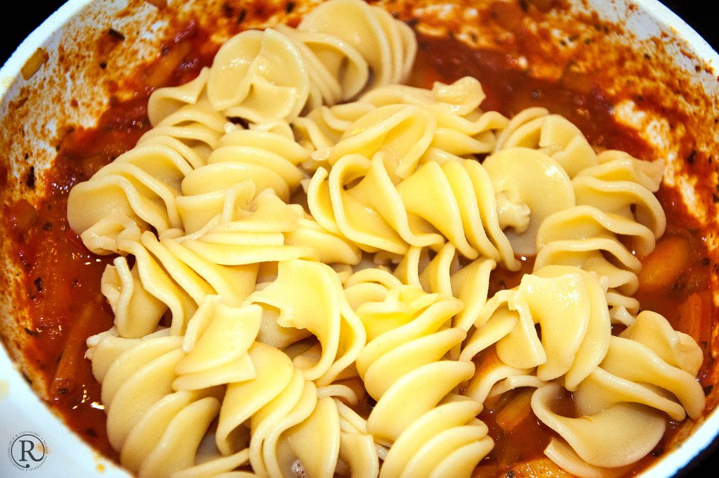 In der selbstgemachten Gemüsebrühe sind sehr viele Kräuter, Gewürze und reichlich Salz. Wem das nicht reicht, kann nachwürzen. - Jetzt die Nudeln in reichlich gesalzenem Wasser nach Verpackungsangabe (8 bis 11 Minuten) kochen.