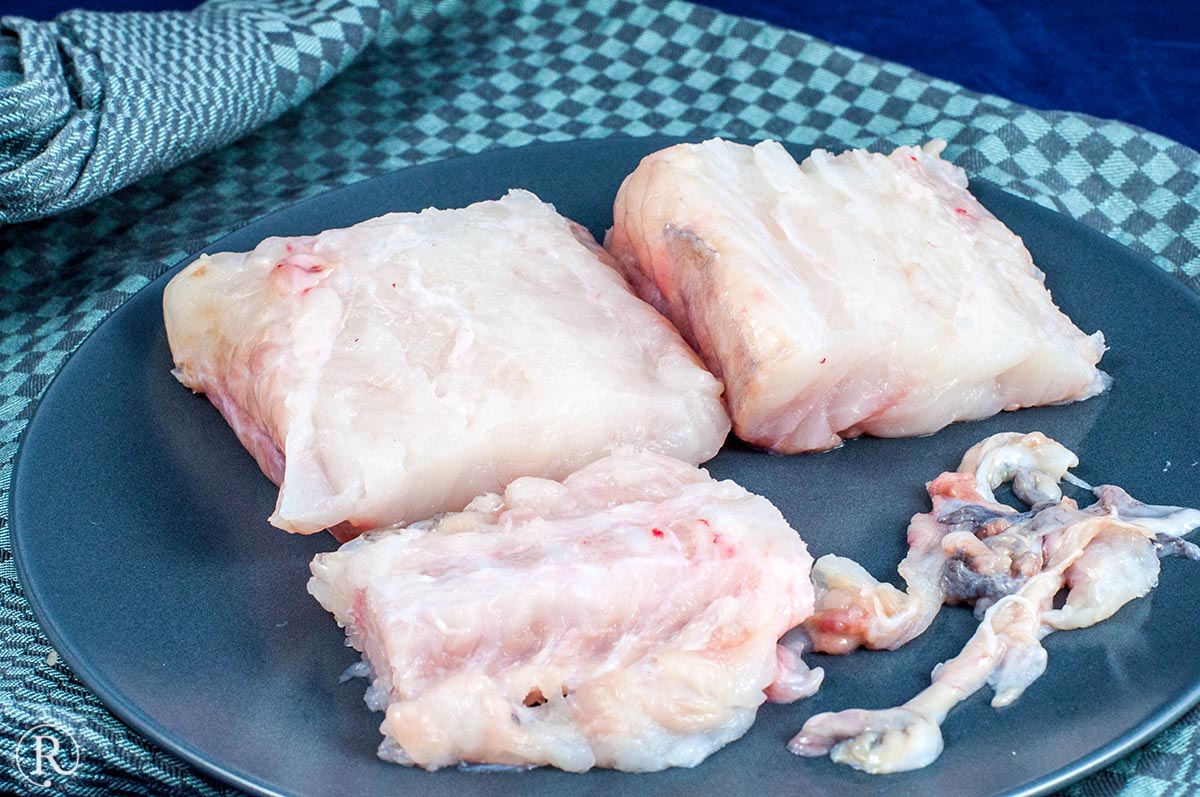 - ca 250 g Seeteufelfilet (muss noch von der letzten Haut befreit werden. Kocht oder brät die mit, wird sie unangenehm zäh)