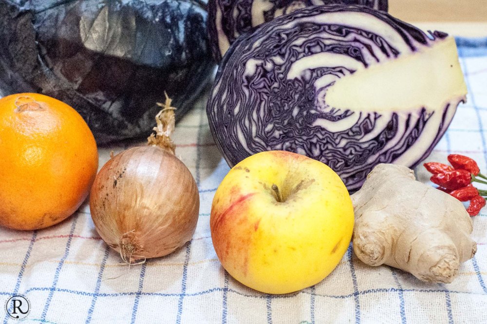 - 2 kleinere Köpfe Rotkraut (die hatten sich irgendwie in der Gemüsekiste versteckt ;-))