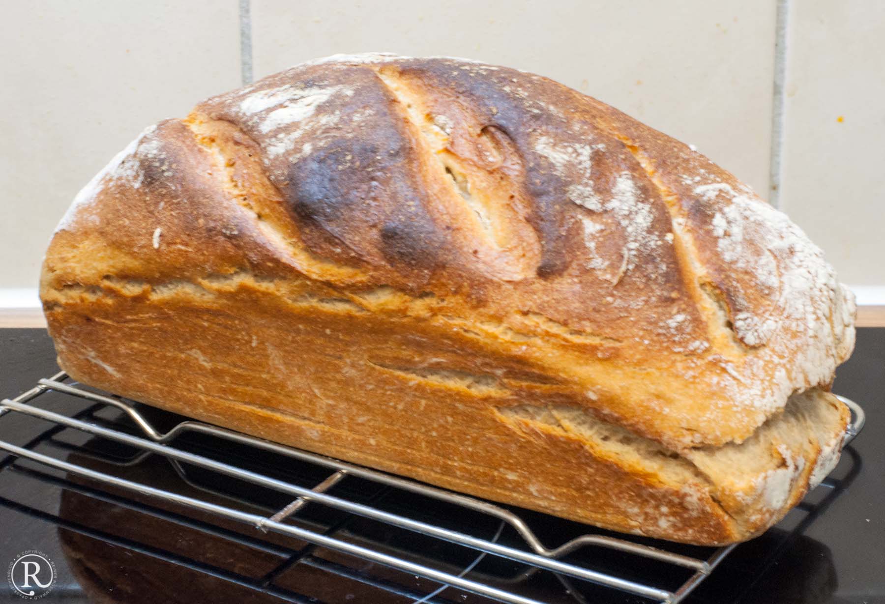 Das Brot auf einem Gitter abkühlen lassen!
