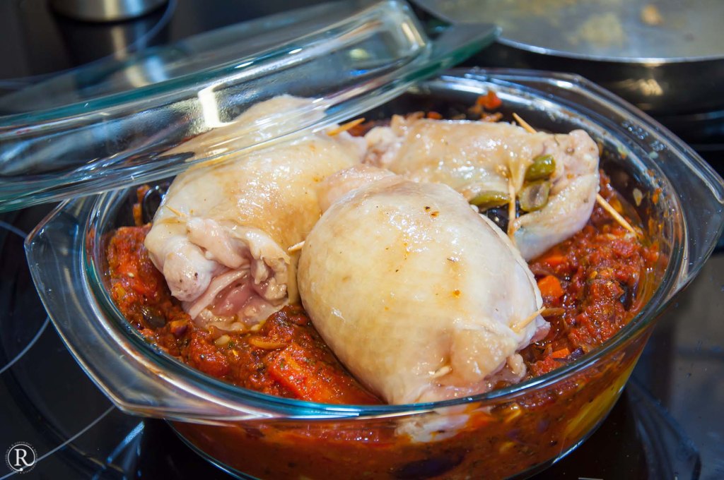 Pollo Fino ausgebeinte Hühneroberschenkel in der Kasserole