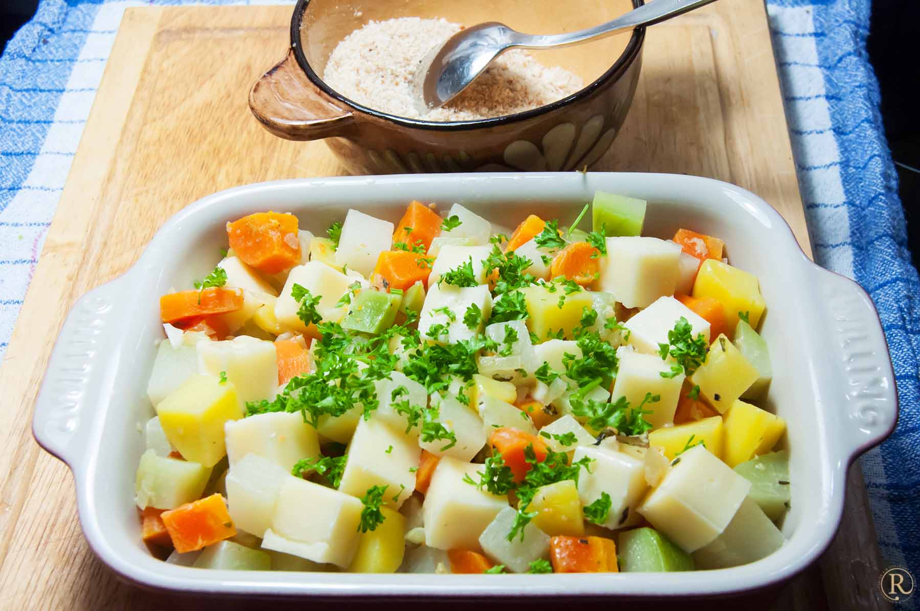 So, da haben wir also die „Überreste“ der Suppenaktion. Der für zuerst geplante Kohlrabi-Karotten-Kartoffel-Auflauf wurde am Folgetag umgesetzt und diesmal ganz ohne Fleisch.