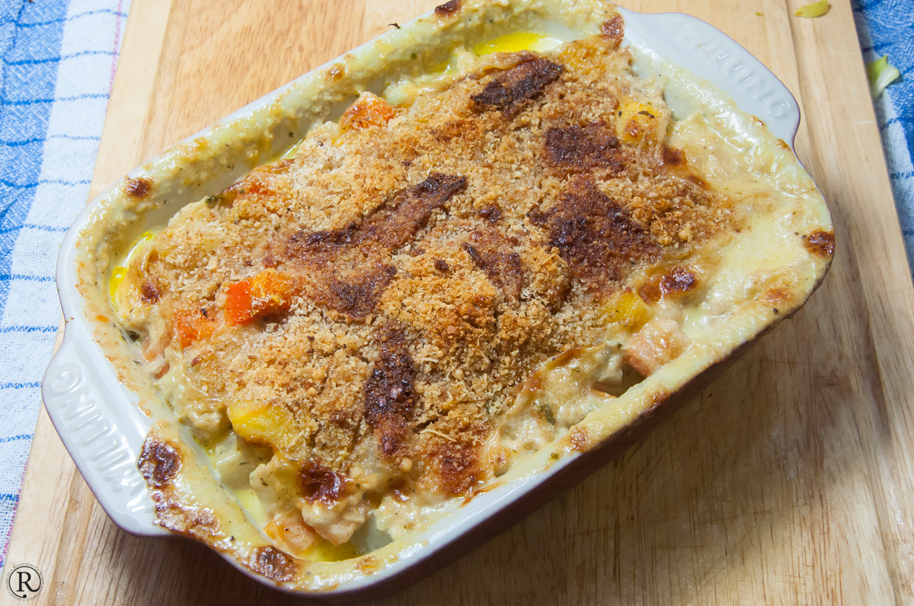 Und das Ganze ist zumindest vegetarisch. Wenn die Sahne durch Kokosmilch, der Gouda durch eine vegane Alternative ersetzt und die Butter weggelassen wird sogar vegan!