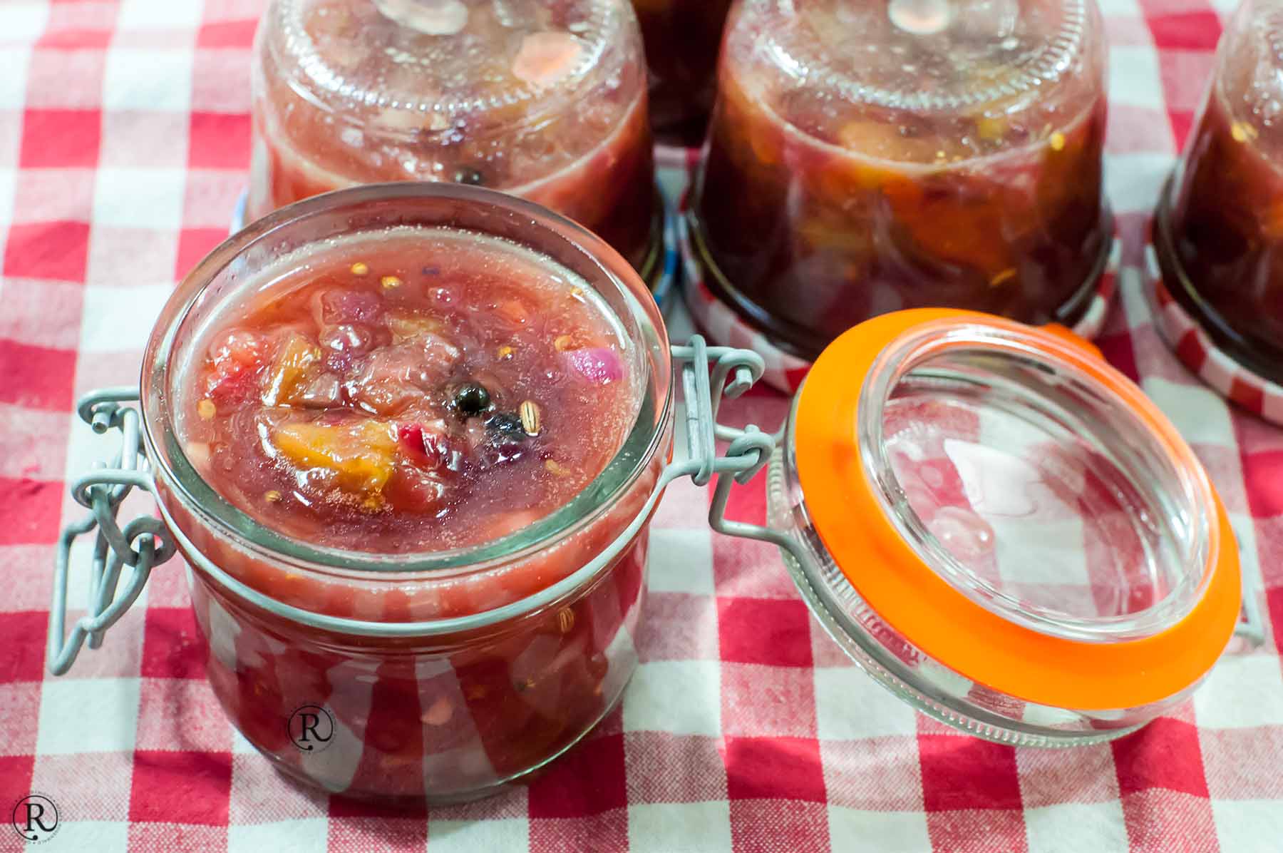 Ich verwende 230 ml Schraubgläser, damit das Chutney nach dem Öffnen aufgebraucht wird.