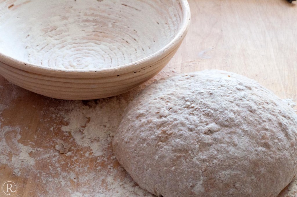 Es muss kein Gärkorb sein. Ein Durchschlag-Sieb mit einem bemehlten Geschirrtuch tut es auch