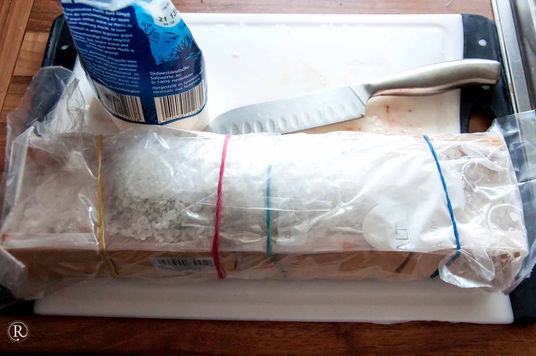- nach 48 Stunden die Forelle gründlich mit klarem Wasser abspülen und mit Küchenkrepp trocknen