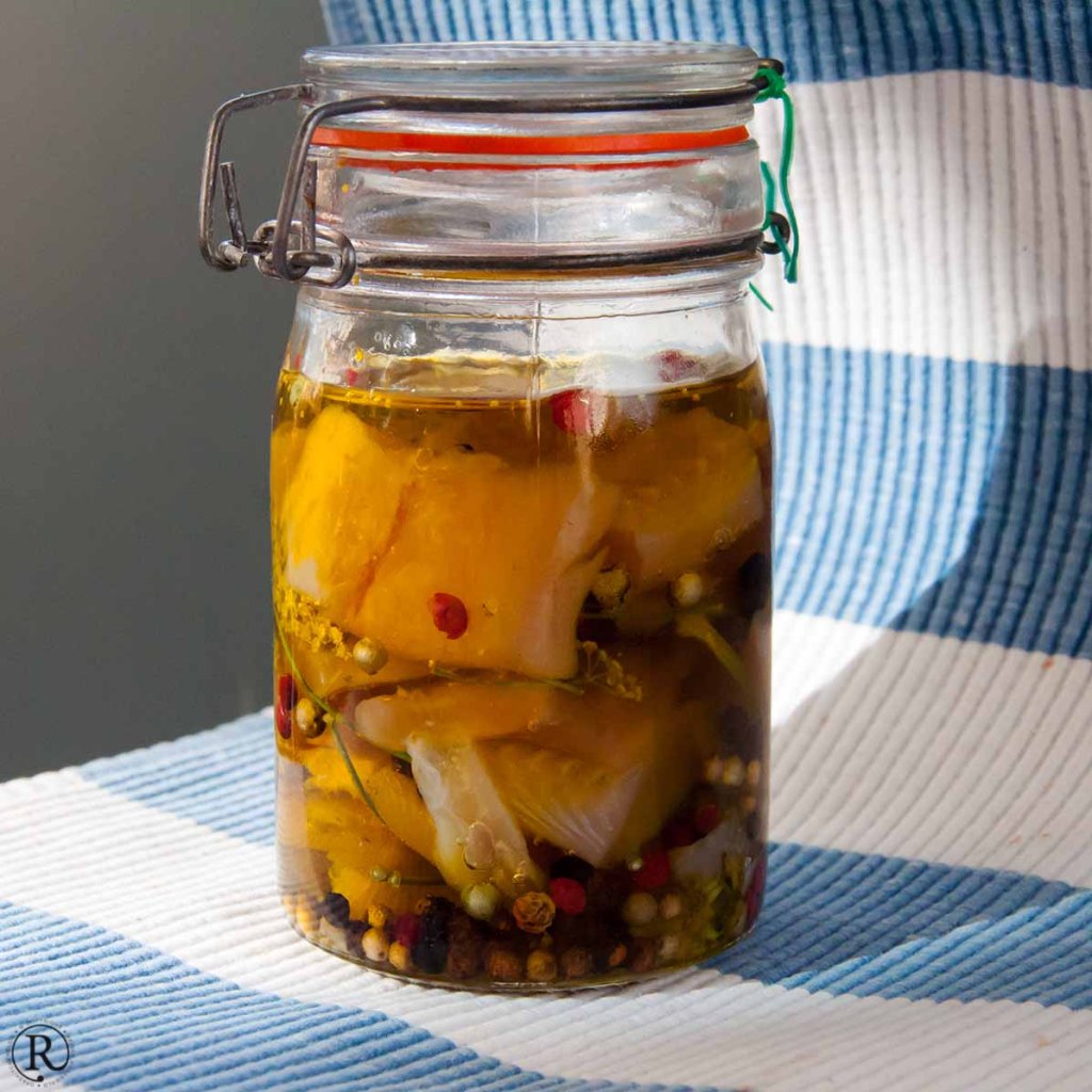 - Mettre dans un bocal des morceaux de truite, recouvrir d’huile d’olive. Mettre également l’épice