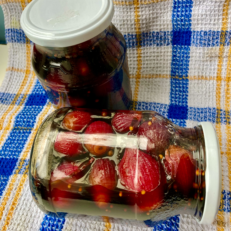 Die Zwiebeln sind bestimmt äußerst lecker. Man kann sie auch nur mit Salz einlegen und ein paar Wochen fermentieren lassen. Das ist mein Favorit.