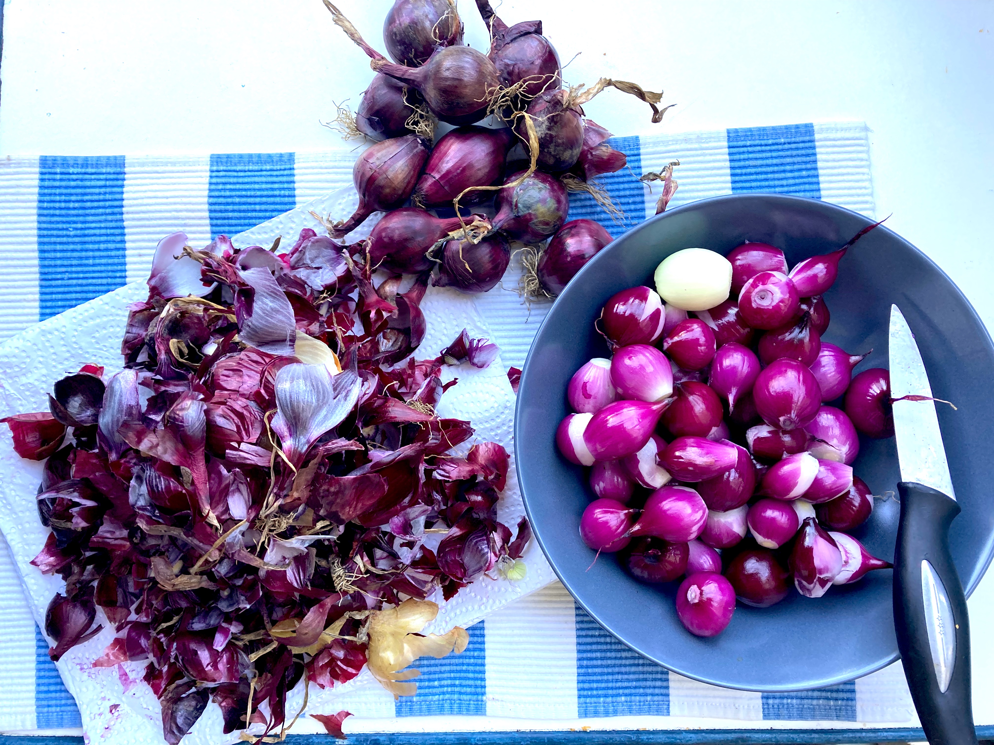Aber, da lagen hunderte so kleine Zwiebelchen herum und das brachte mich auf eine Idee – eingelegte Zwiebel, so ähnlich wie Silberzwiebel, aber halt mit richtigen Zwiebeln.