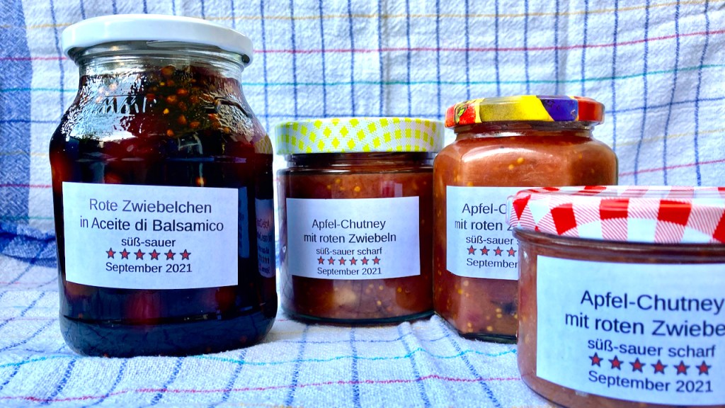 Der Plan steht. Daraus werden zum einen in Balsamico eingelegte Zwiebel, die werden dann auf der Anti-Pasti-Platte angerichtet und dann noch ein süß-saures-scharfes Apfel-Zwiebel-Chutney für das nächste Grillen, zu einem kräftigem Käse oder als Aufstrich.