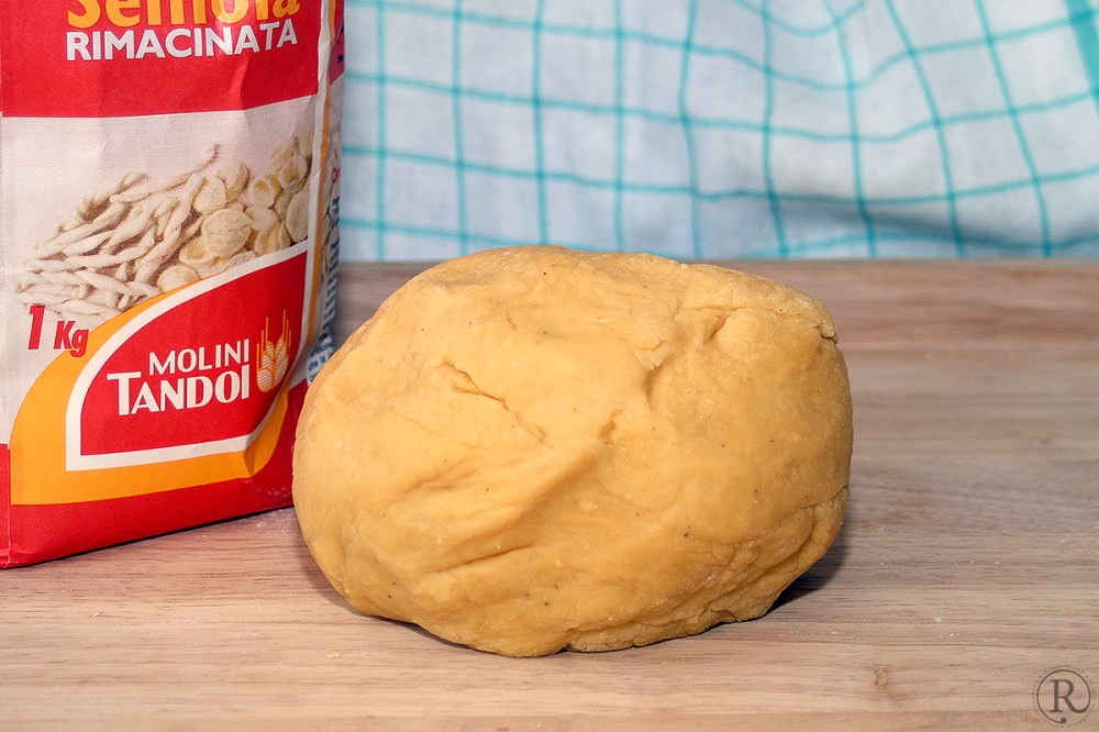 Nach einiger Zeit spürt ihr wie der Teig samtig und geschmeidig wird – dann ist er fertig - eine längliche Wurst formen, in Frischhaltefolie einpacken und für mindestens eine Stunde in den Kühlschrank geben