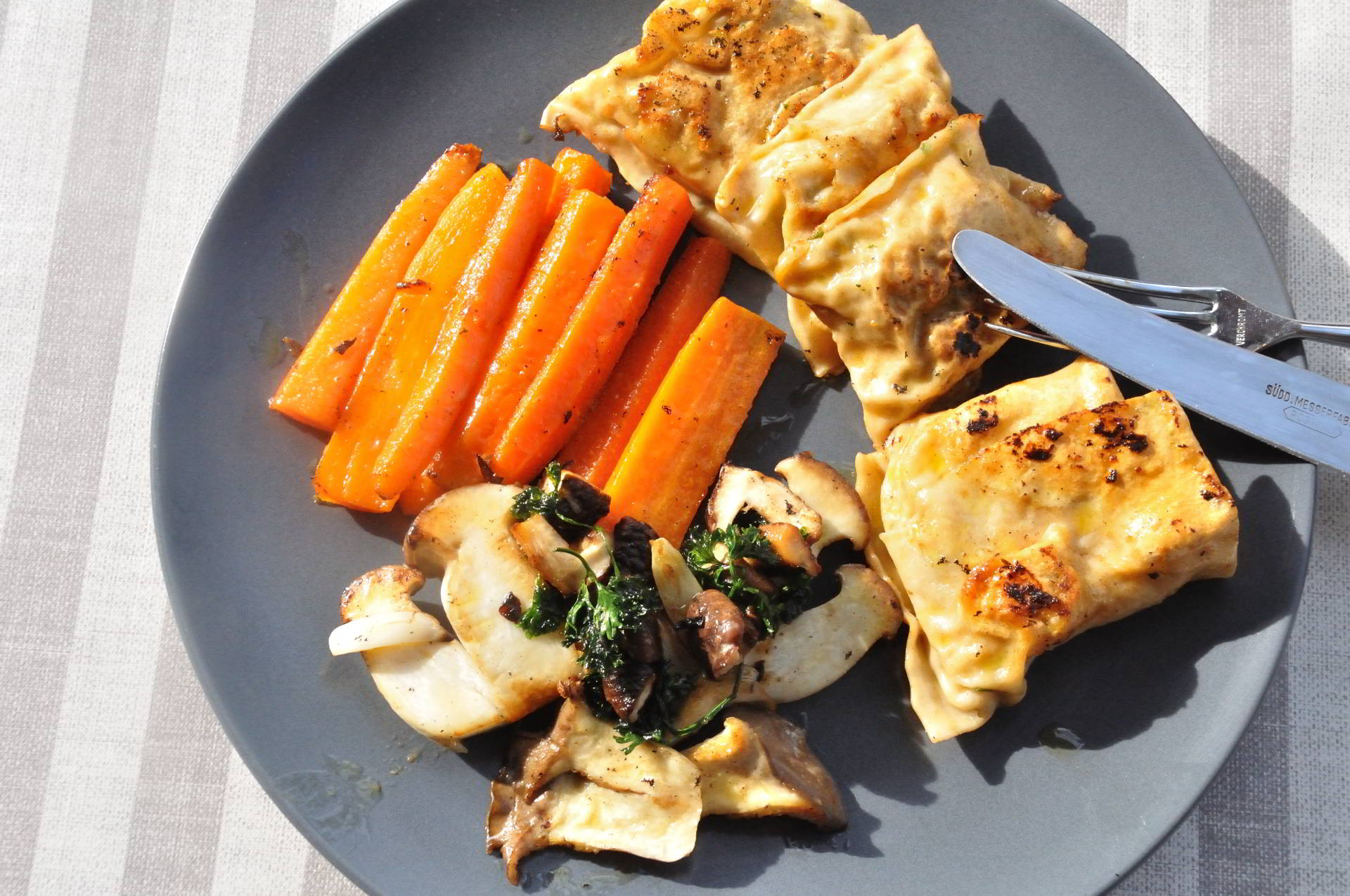 An die Stelle vom Brät tritt zum einen Quark, Semmelbrösel und Ei, zum anderen eine Pilzmischung aus Kräuterseitling, Austernseitling und Shiitake.