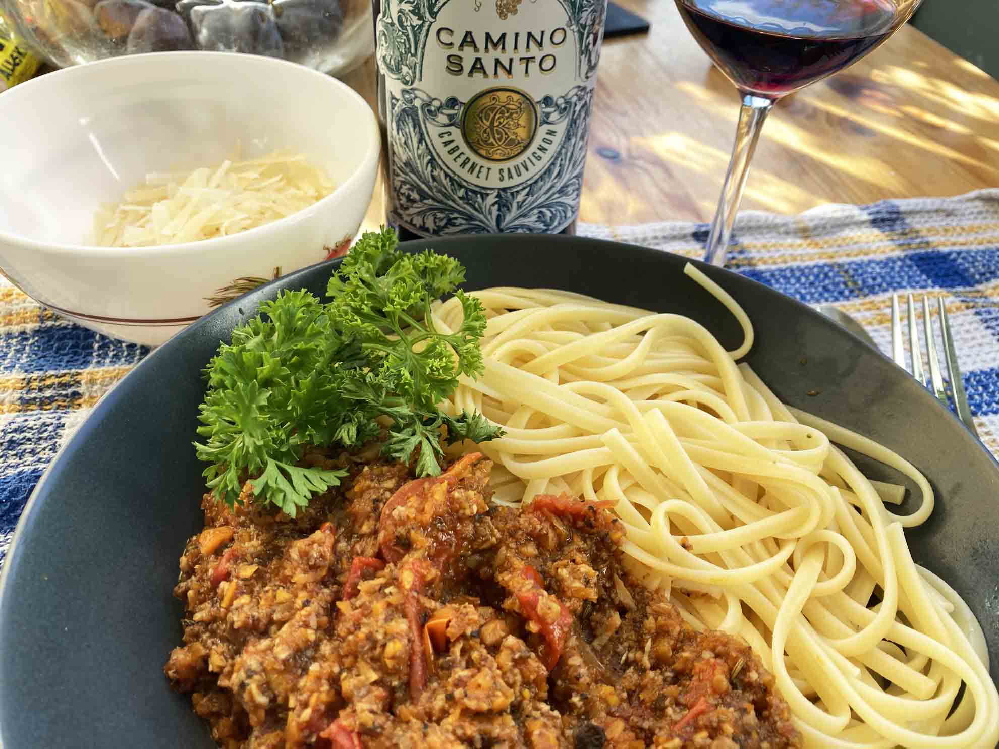 - ein paar Esslöffel vom Nudelwasser unter die Sauce rühren