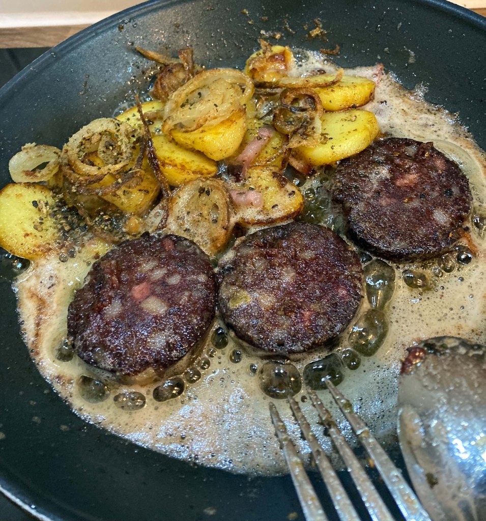 Das mag ja nicht jeder – Blutwurst – aber für den, der sie mag ist das eine sehr leckere Variante der Zubereitung. Das schmeckt nicht nur dem Badener.