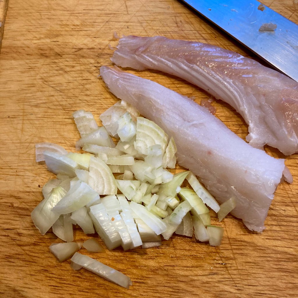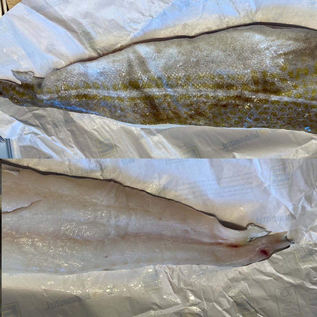 - 100 g Kabeljau (das ist hier der Rest vom großen Filet)